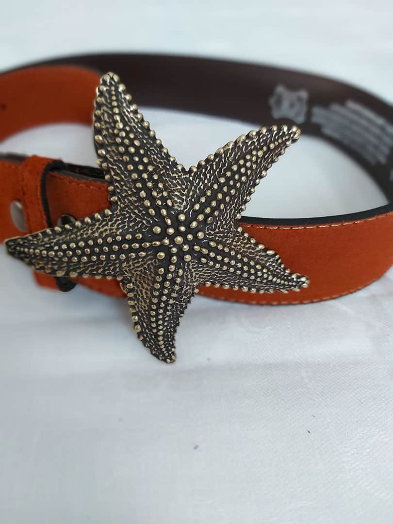 Hebilla en forma de estrella de latón para poder adaptar a cinturones que tengan el sistema de adaptación de hebillas.